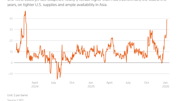 The difference in price (premium) for immediate delivery of US West Coast jet fuel sold to Asia has expanded to its largest margin in...