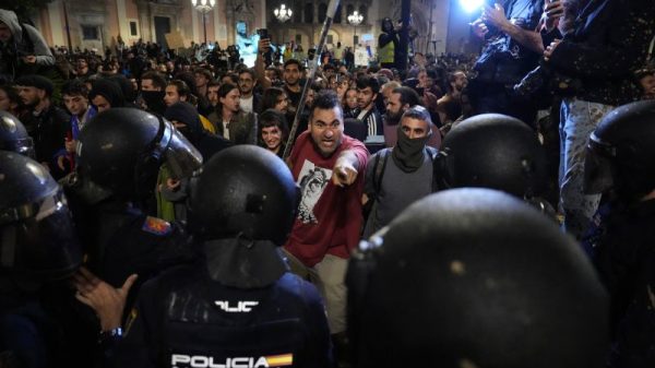Protesters and police clashed in the streets of Valencia in eastern Spain on Saturday, as tens of thousands of people marched to demand the...
